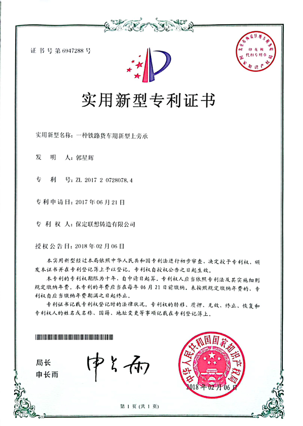 近日,我公司收到了中鐵檢驗(yàn)認(rèn)證中心郵寄的鐵路貨車(chē)產(chǎn)品斜楔認(rèn)證證書(shū),這是公司繼鐵路產(chǎn)品承載鞍后又一資質(zhì)...