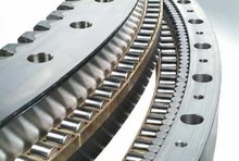 單排交叉滾柱式回轉(zhuǎn)支承,由兩個(gè)座圈組成,結(jié)構(gòu)緊湊、重量輕、制造精度高,裝配間隙小,對(duì)安裝精度要求高,滾柱為1:1交叉排列, 能同時(shí)承受軸向力、較大徑向力和傾翻力矩。被廣泛用于起重運(yùn)輸、工程機(jī)械和軍工產(chǎn)品。